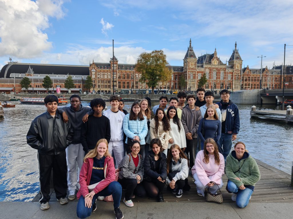 Vom 22.-26.9. hieß es für die Klassen 10 a, b und c “Koffer packen und ab nach Amsterdam”, denn unsere Abschlussfahrt stand an. Die Vorfreude war groß: Wir machten uns montags morgens mit einem Doppeldeckerbus von der Schule auf den Weg nach Amstelveen, ca. 30 Minuten südlich von Amsterdam, denn dort lag unser Bungalowpark, in dem wir in der Woche untergebracht waren. Wir wohnten in 6er-Bungalows und bezogen nach der Ankunft zunächst unsere Häuser bzw. machten uns auf den Weg zum Supermarkt, um uns für die Woche mit Lebensmitteln einzudecken. Die Bungalows waren zwar recht einfach, aber wir machten es uns in den nächsten Tagen dort trotzdem gemütlich.