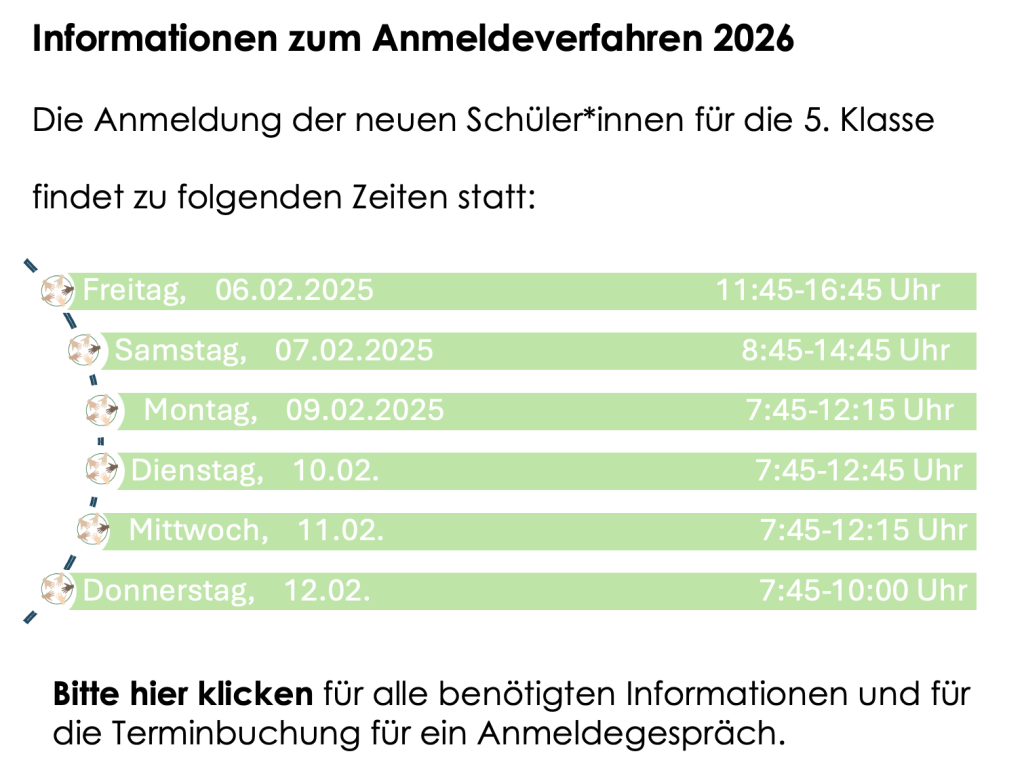 Anmeldeverfahren für die 5.Klassen im Schuljahr 2026/27