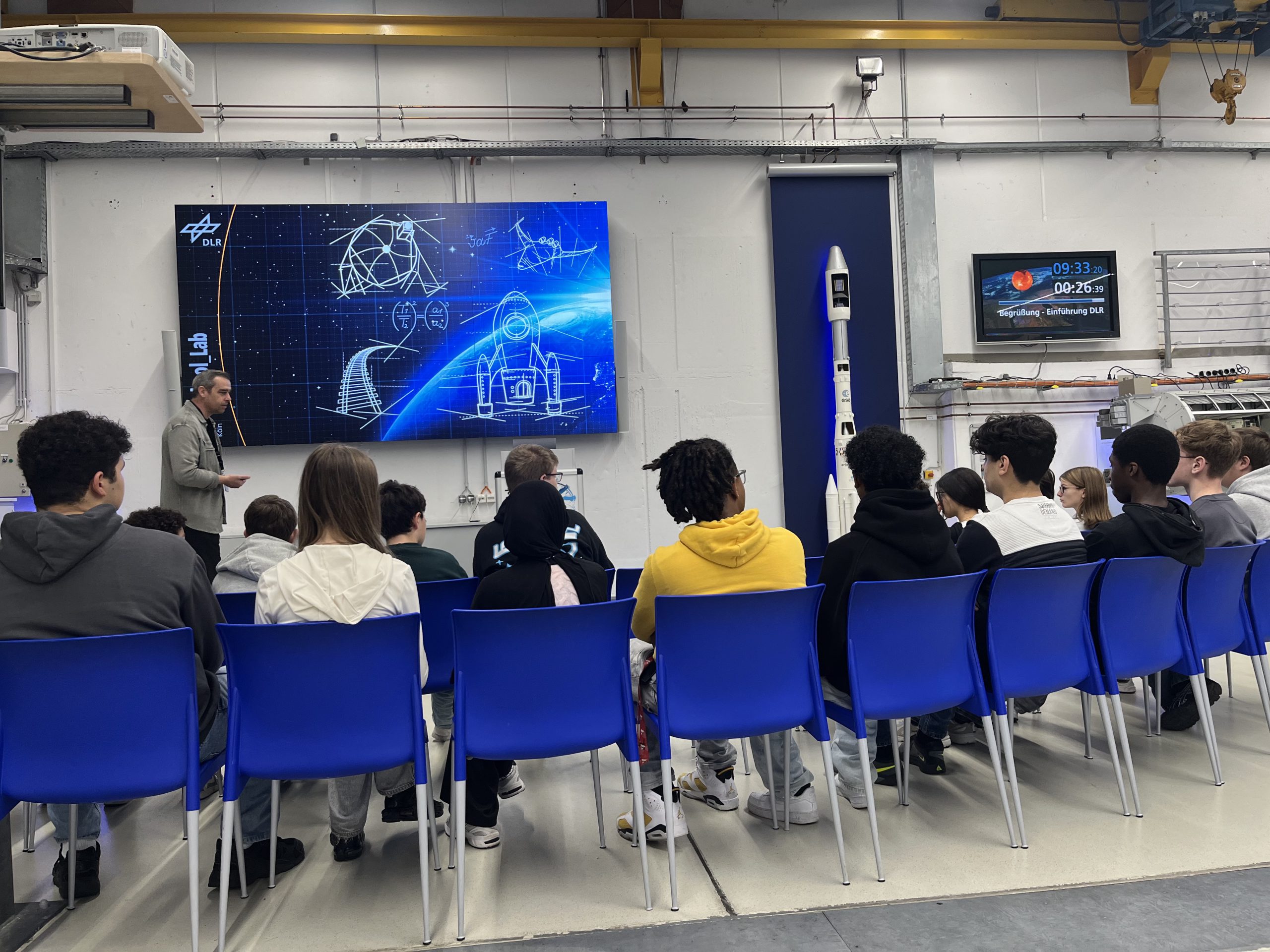 Am 14. November besuchten ausgewählte Schülerinnen und Schüler der Jahrgänge 8 und 10 im Rahmen der Begabungsförderung das DLR_School_Lab. Dort führten sie faszinierende Experimente rund um Luft- und Raumfahrt durch und erhielten spannende Einblicke in aktuelle Forschung. Ein besonderes Highlight war der Besuch der neuen LUNA-Forschungshalle sowie die Begegnung mit Matthias Maurer – einem deutschen Astronauten! Als ESA-Astronaut verbrachte Maurer im Herbst 2021 177 Tage auf der ISS.